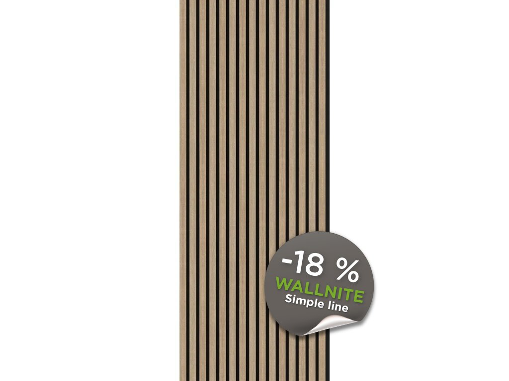 Akustický panel Wallnite Simple line černý filc Dub Karamelový 2750×604×21. Moderní panel s černým filcem, dekor dub karamelový. Výborně pohlcuje zvuk a zlepšuje akustiku místnosti. Elegantní design a jednoduchá instalace.