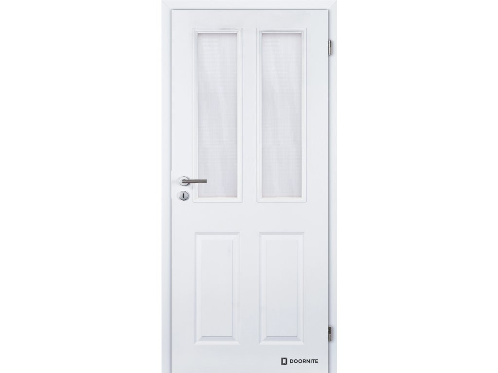 Dveře falcové lakované, bílá Doornite 1, Achilles hladké, sklo screen, dozický zámek