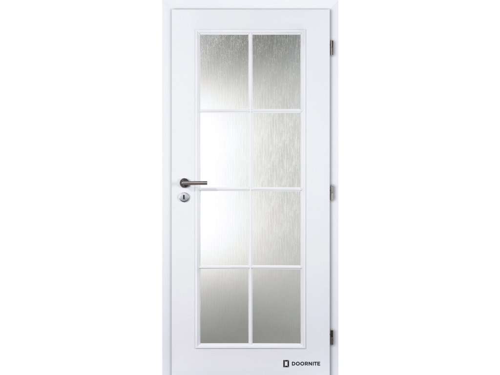 Skleněná výplň kůra čirá propouští dostatek světla, přitom však zachovává soukromí díky své reliéfní struktuře. Bílý lakovaný povrch v odstínu Doornite 1 působí svěže, čistě a snadno se kombinuje s různými barvami i materiály v interiéru.