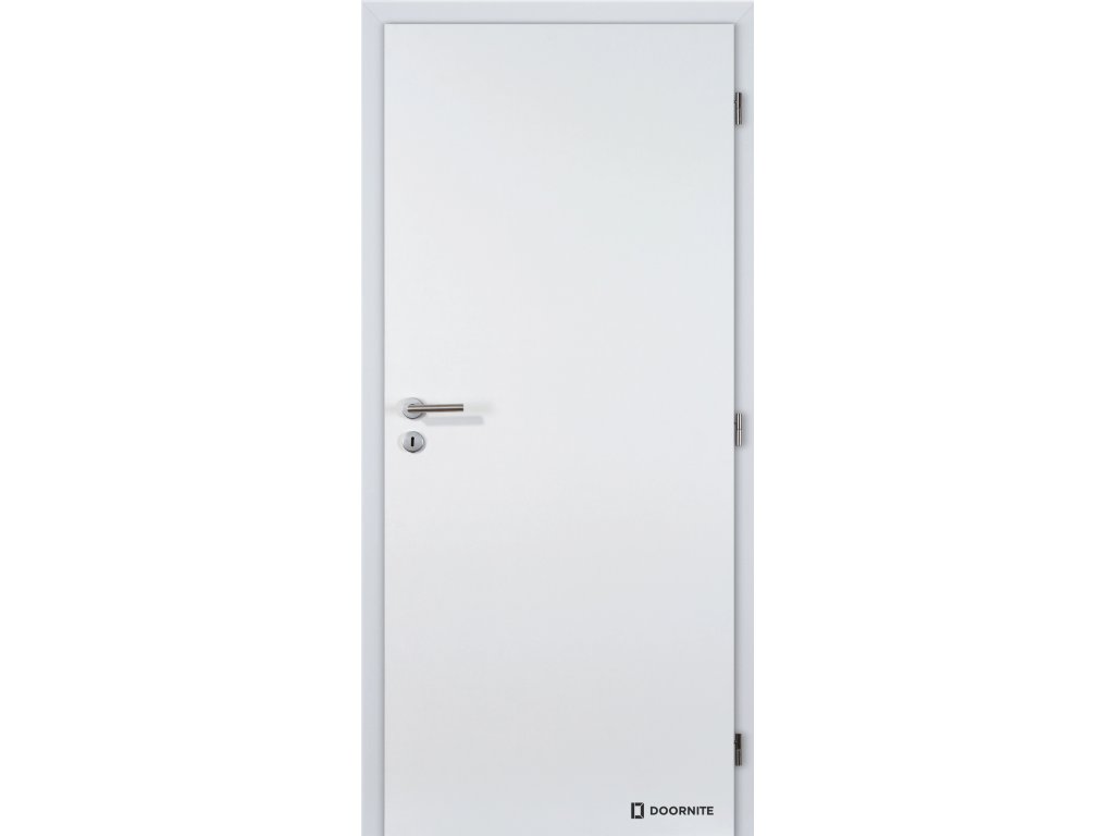 Dveře jsou standardně dodávány s dozickým zámkem s plastovou střelkou a závorou a roztečí 72 mm. Zárubeň a klika nejsou součástí balení. Vhodné zárubně v povrchu fólie BÍLÁ. Vzhledem k typu povrchu se odstín mírně liší.
